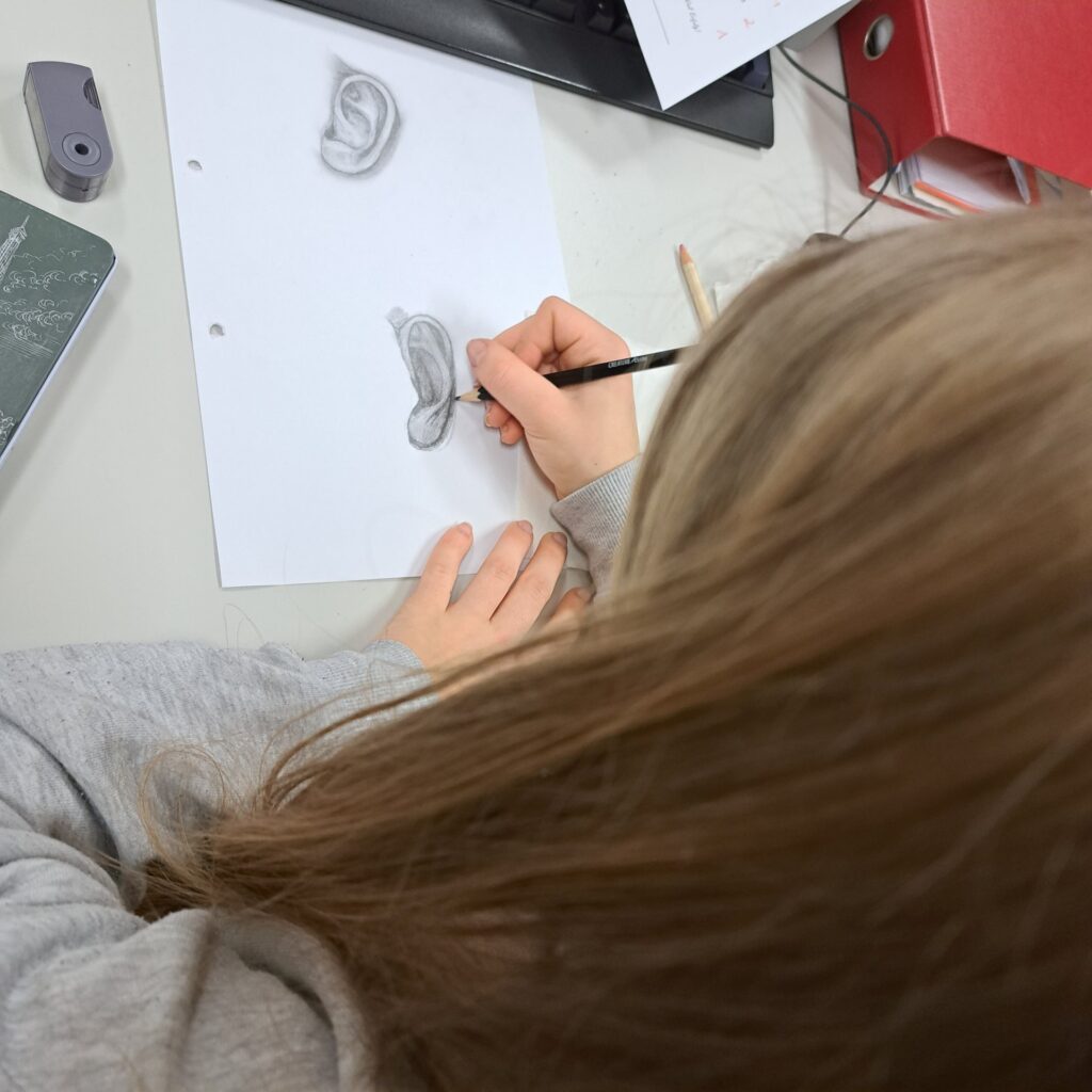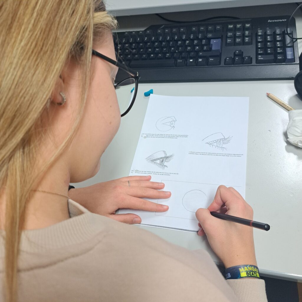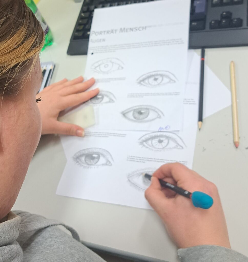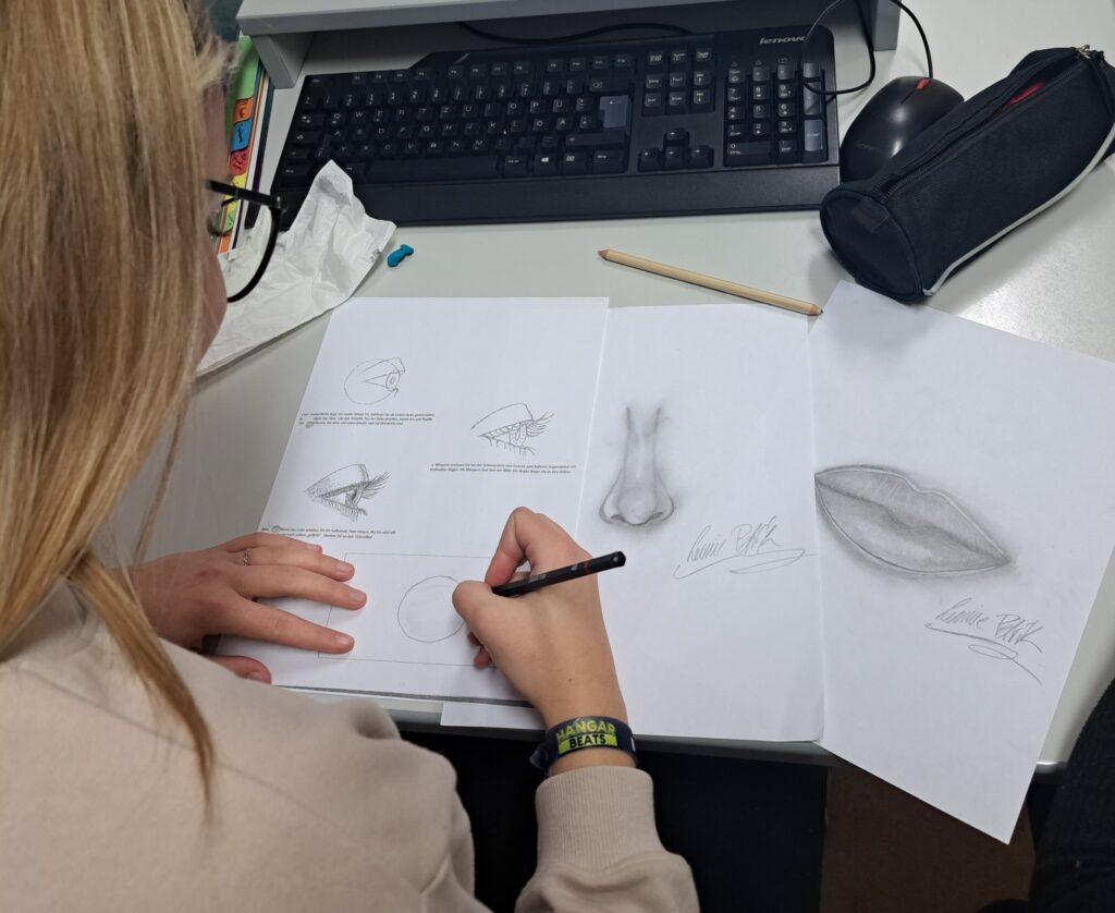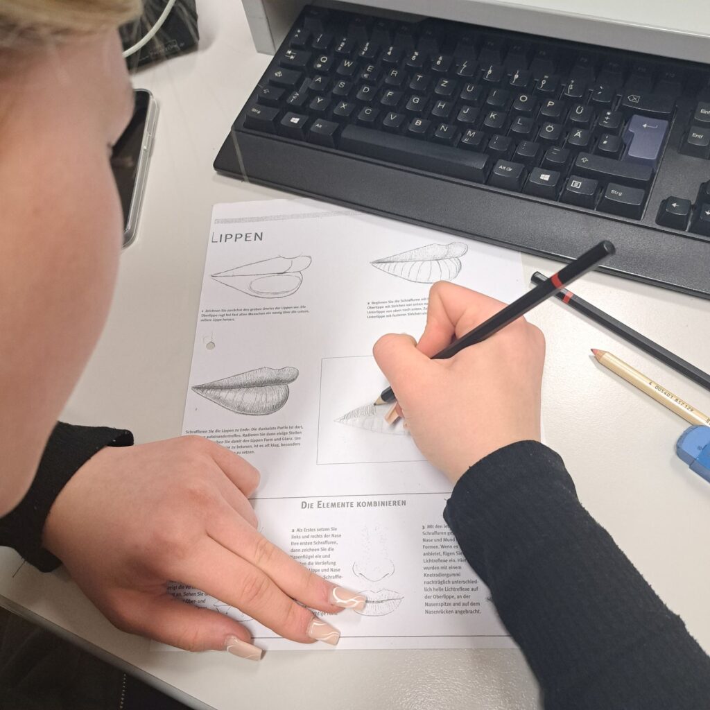 Das Zeichnen von Gesichtsteilen als auch Frisuren gehört im Fachbereich GSS zur fundierten Vorbereitung angehender Friseurinnen und Friseuren und Kosmetikerinnen und Kosmetiker dazu. Unsere SchülerInnen sind darin sehr bemüht und die Ergebnisse können sich zeigen lassen. Auch trainieren und üben die Mädels bereits für den anstehenden Landesbewerb im Mai. Was da gefordert wird, verraten wir hier noch nicht.