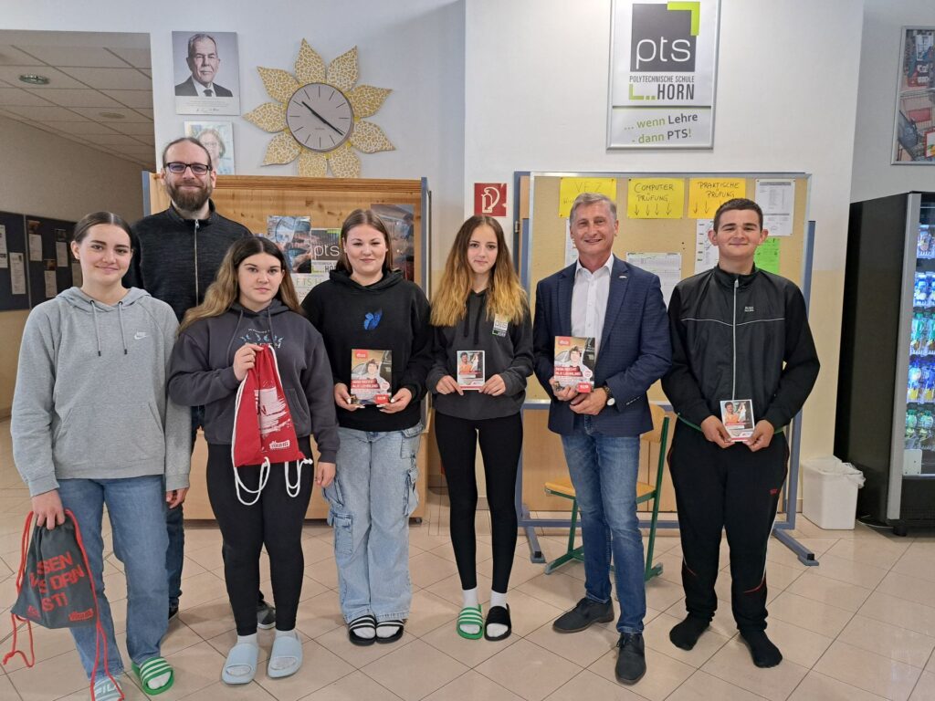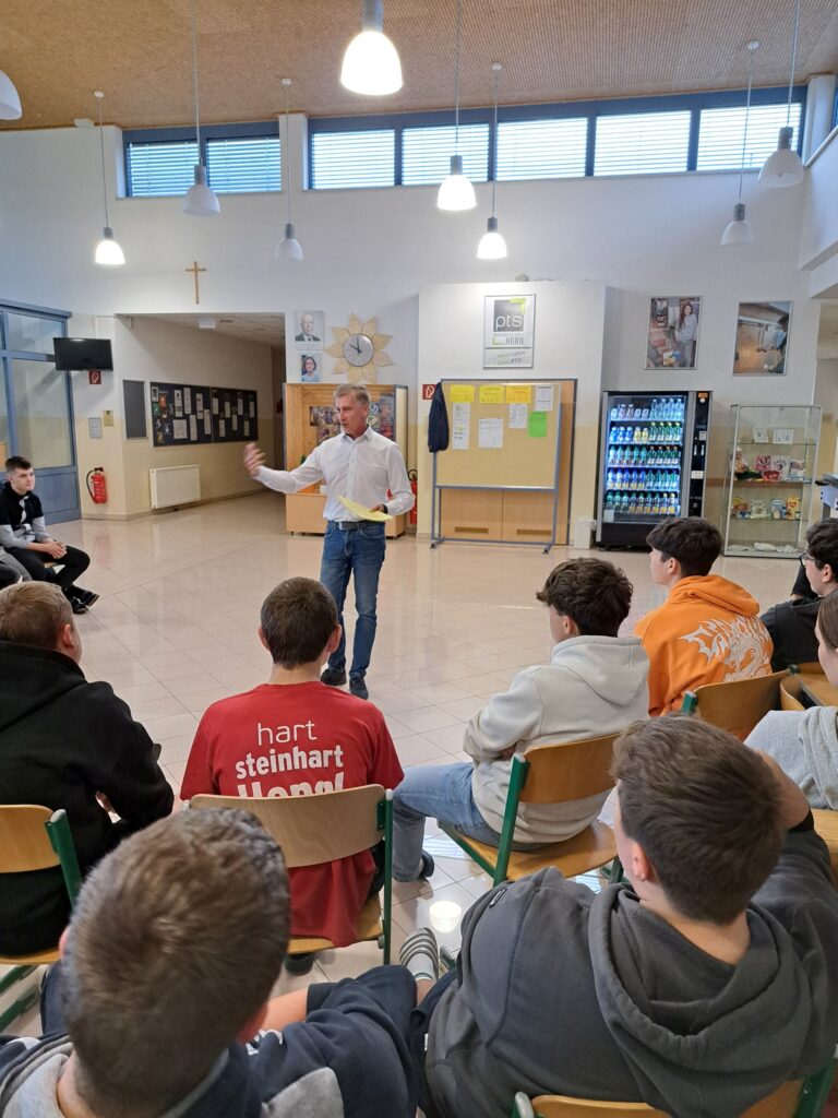 Herr Riedl von der Arbeiterkammer Horn war zu Gast an der PTS und gab den Schülerinnen und Schülern wertvolle Informationen für die Zukunft. Bald steht dem ersten Schritt in den Lehrberuf nichts mehr im Weg.