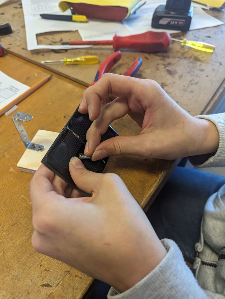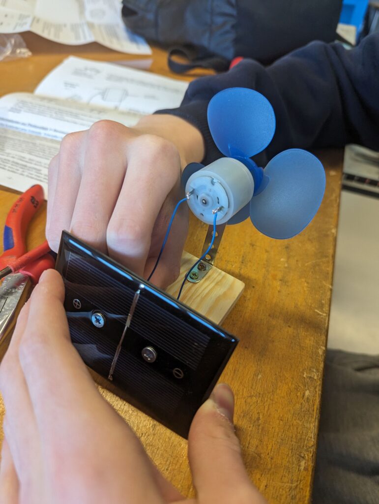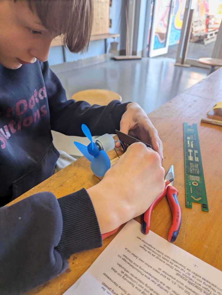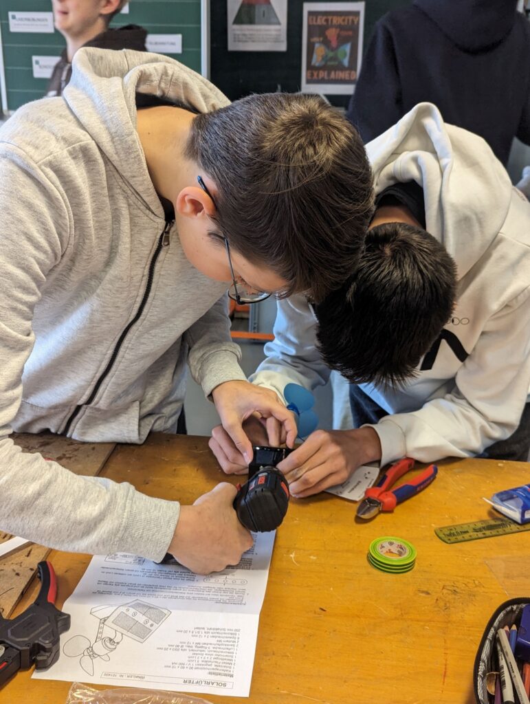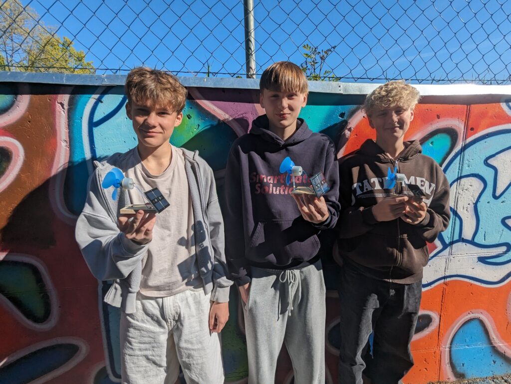 Die Schülerinnen und Schüler des Fachbereiches Elektro setzten sich mit einem sehr aktuellen Thema auseinander, nämlich der Photovoltaik. In der Fachkunde erarbeiteten sie die Grundlagen, erfuhren mehr über den Aufbau von Photovoltaikanlagen, Verschattung, Ausrichtung, Reihen- und Parallelschaltung und Effizienz. In der Fachpraxis bauten sie einen Ventilator mit Solarmodul und konnten so die theoretischen Kenntnisse an einem sonnigen Tag erproben.