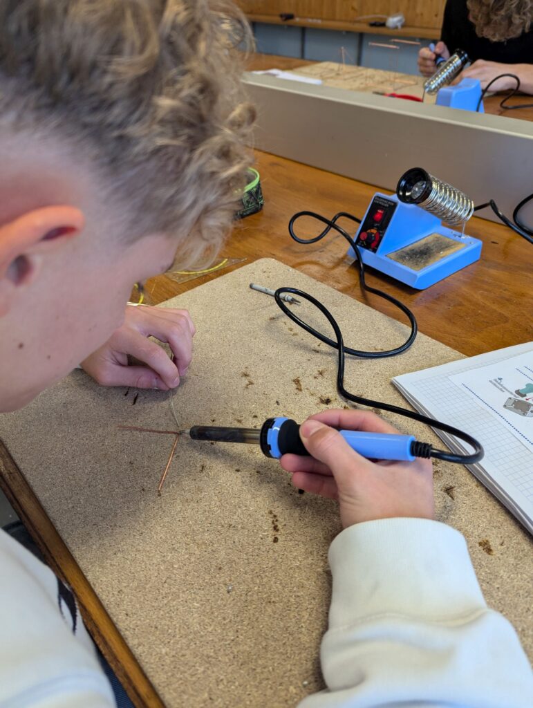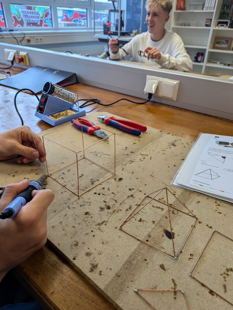 Die Schülerinnen und Schüler des Fachbereiches Elektro erlernten im Fachpraxis Unterricht die Grundlagen des Lötens. Begonnen wurde mit einfachen Formen, danach folgten dreidimensionale Körper und auch Eigenkreationen. Dabei sind sehr kreative Arbeiten entstanden.