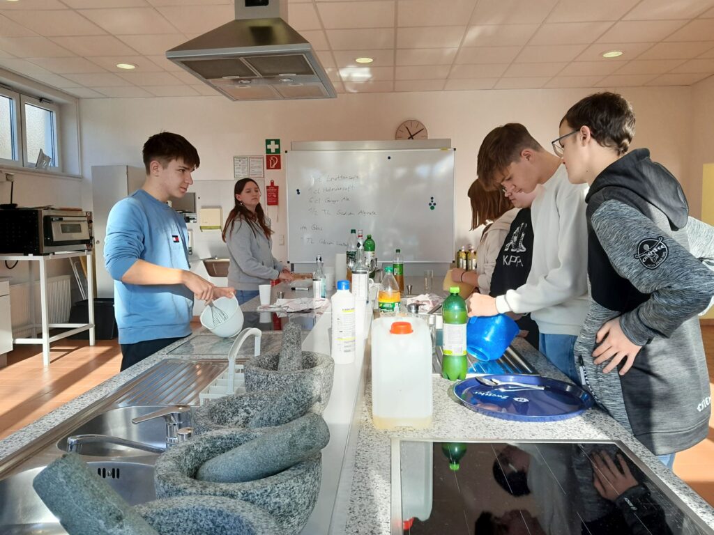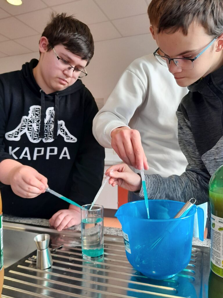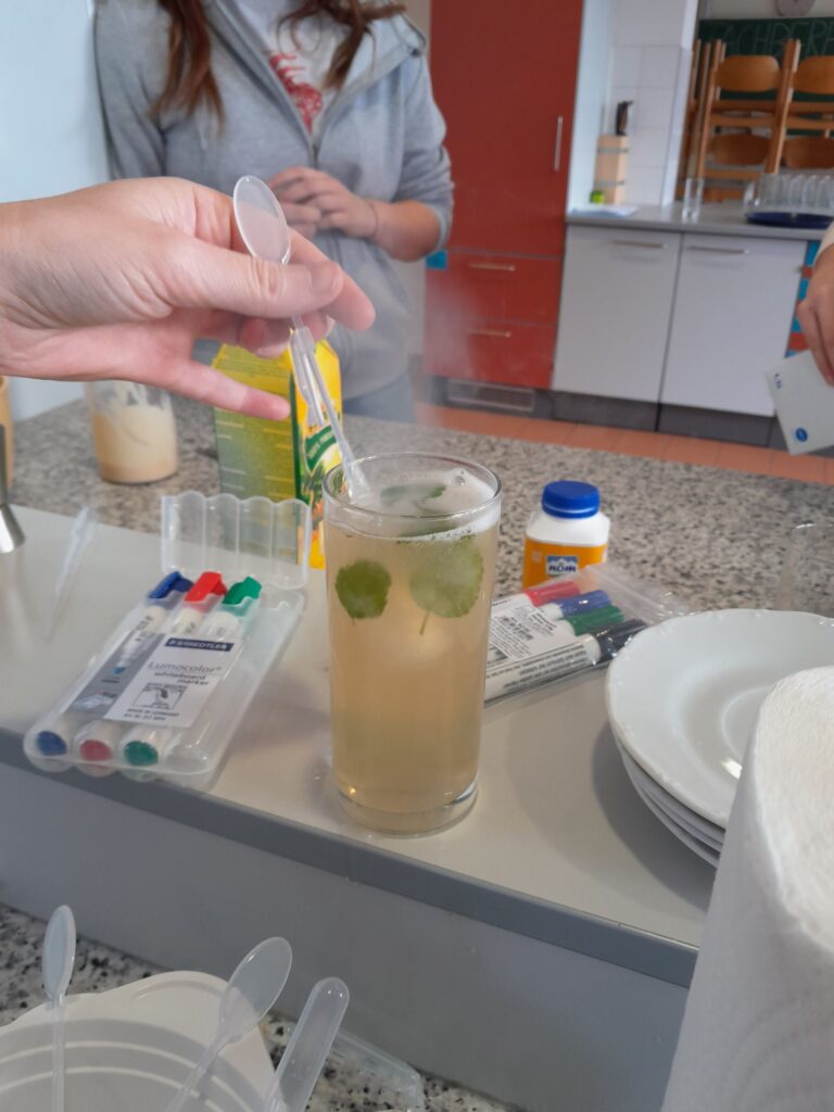 Wie spannend Physik und Chemie sein können, erlebten unsere Schülerinnen und Schüler beim Workshop Molekularküche. Tanja Neidhart, studierte Astronomin von der Organisation SCI.E.S.COM kam mit einem ganzen Auto voller Experimentiermaterialien zu uns und die Schülerinnen und Schüler durften Bubbles à la Bubble-Tea zubereiten, Cocktails mit Piña Colada-Schaum schlürfen, stellten Gummibärchen her und kreierten spezielle Mojito-Eiwürfel im Trockeneis. Es gab viel Ungewöhnliches zu verkosten und alle waren sehr begeistert.