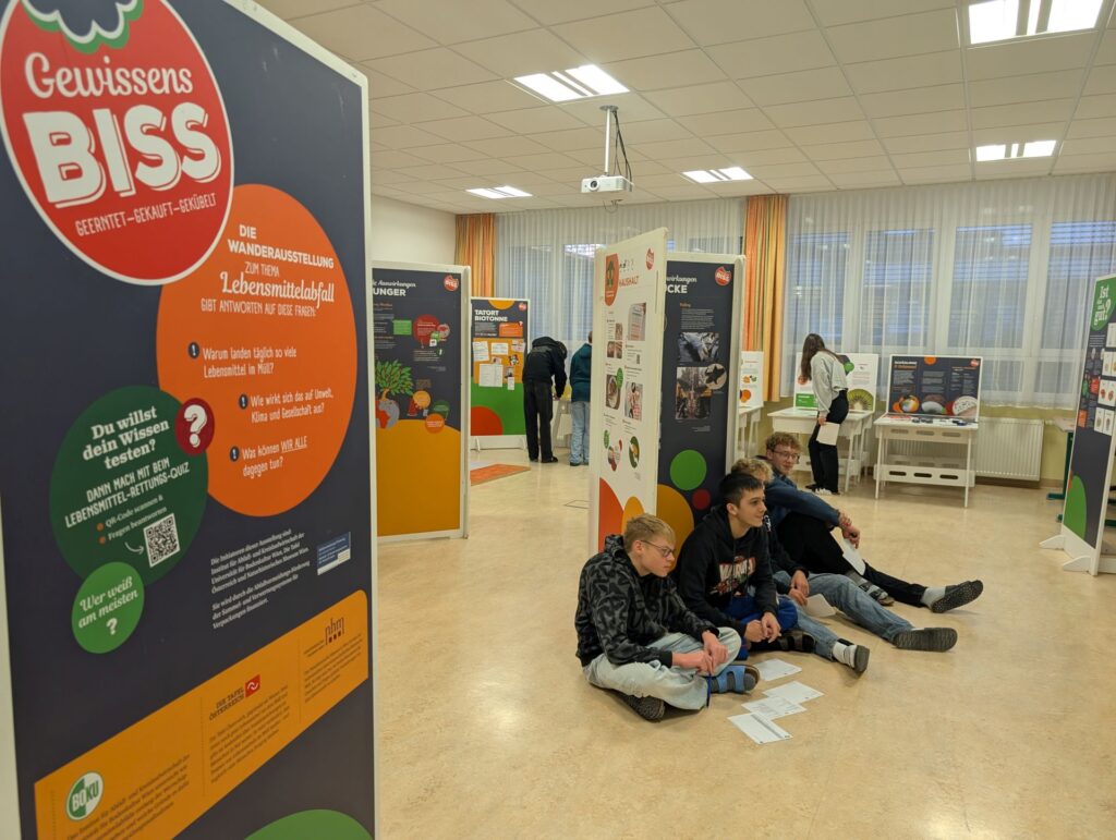 Würdest du 800 € einfach so wegwerfen? Das würde wohl keiner von uns. Doch trotzdem tun wir es! Jedes Jahr wirft jeder von uns im Durchschnitt 40 kg Lebensmittel weg – das sind umgerechnet bis zu 800 €! Und WIR ALLE können etwas beitragen, damit weniger Lebensmittel im Müll landen! Zwei Wochen lang zeigen wir die interaktive Ausstellung an der PTS Horn und erreichen damit etwa 230 Schülerinnen und Schüler.