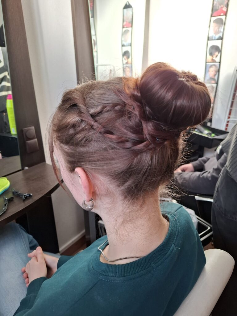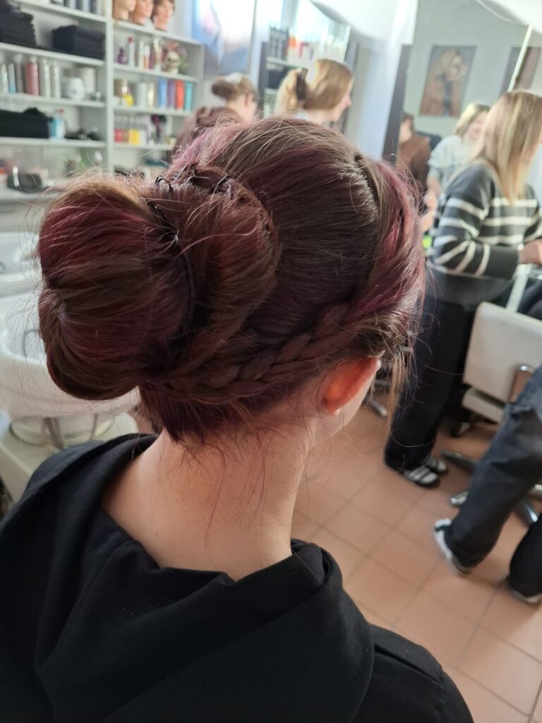 Im Fachkundeunterricht durften die Mädels der Gruppe Gesundheit-Schönheit-Soziales einen besonders kreativen Nachmittag erleben. Martina S. (selbst gelernte Friseurin) war in der PTS Horn an einem Nachmittag zu Besuch und zeigte den Mädchen den einen oder anderen Trick, damit Hochsteckfrisuren auch gut gelingen. Schaut euch selbst die Ergebnisse unserer angehenden Friseurlehrlinge an.