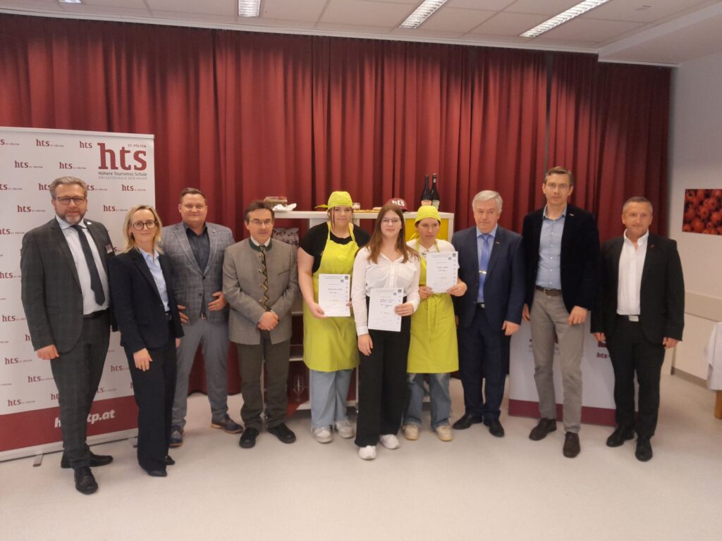 Wir sind überaus stolz und gratulieren unseren Schülerinnen Sophie, Anika und Svenja, die beim Kochen eines dreigängigen Menüs und im Service ( incl . gehobenes Weinservice!) eine ganz tolle Leistung erbracht haben und für die PTS Horn einen großartigen dritten Platz geholt haben! Die Veranstaltung zeigte wieder einmal die hohe Qualität der Ausbildung an den Polytechnischen Schulen und dies wurde von den Vertretern der Wirtschaftskammer, die als Juroren fungierten, in Ihrer Ansprache besonders gewürdigt. Mädels, wir sind stolz auf euch!!