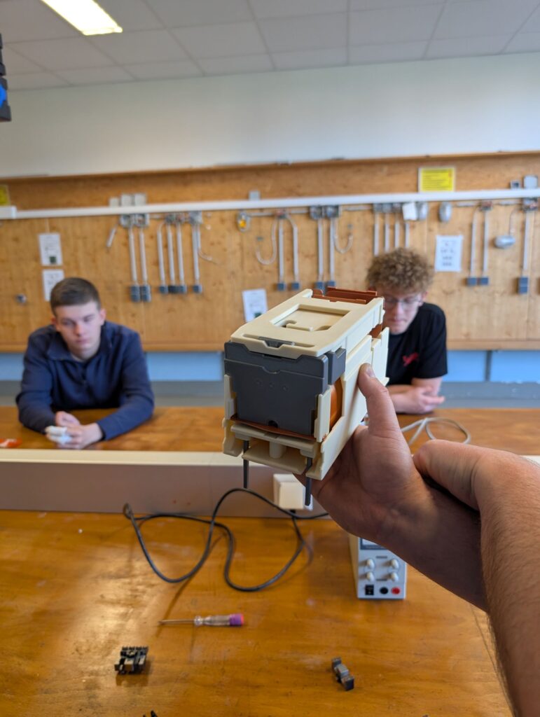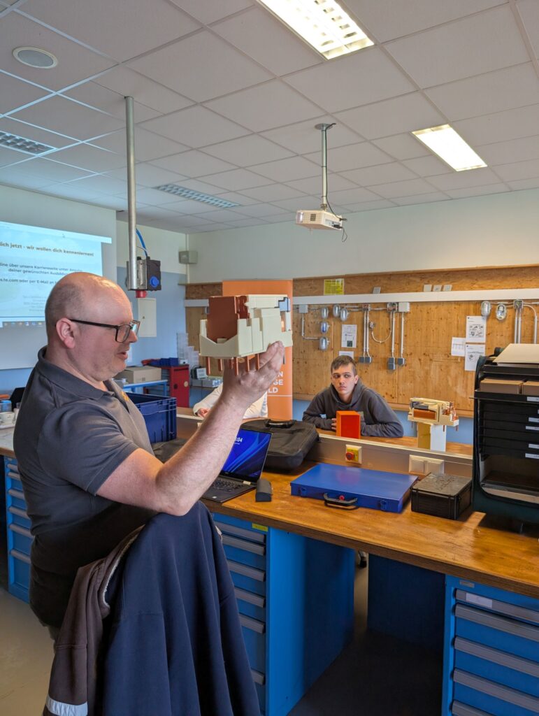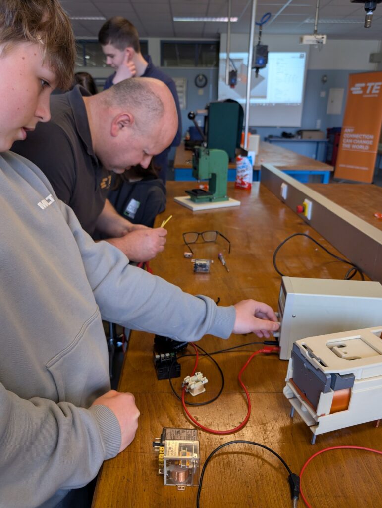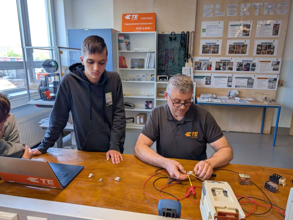Am Fachbereichstag durften die Schülerinnen und Schüler des Fachbereiches Elektro an einem Relais Workshop der Firma TE Connectivity teilnehmen. Dipl. Industrieausbilder Christian Lapacka und Lehrlingsausbilder Robert Wenisch brachten den angehenden ElektrikerInnen und MechatronikerInnen das Relais, dessen Funktionsweise und seine Anwendung näher. Außerdem erhielten die Schülerinnen und Schüler einen guten Einblick in die Produktion am Standort Dimling. Als Abschluss bauten sie noch selbst ein Relais zusammen und prüften es auf seine Funktion.