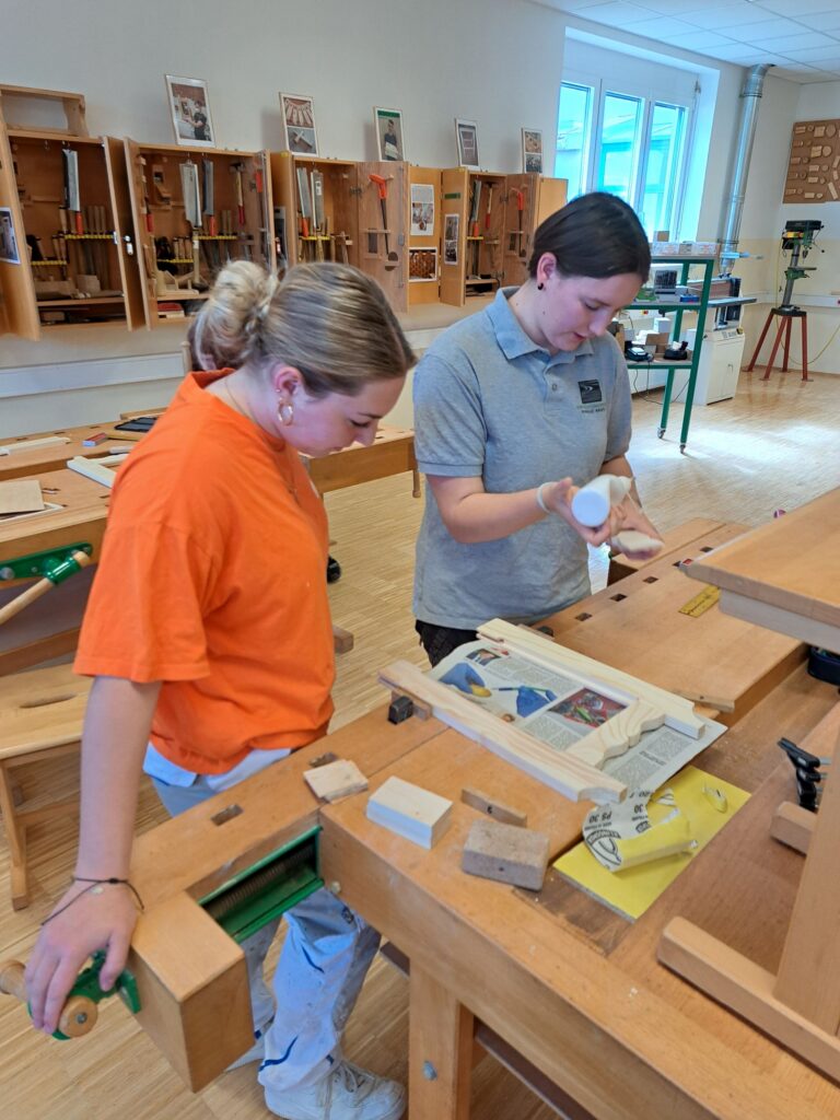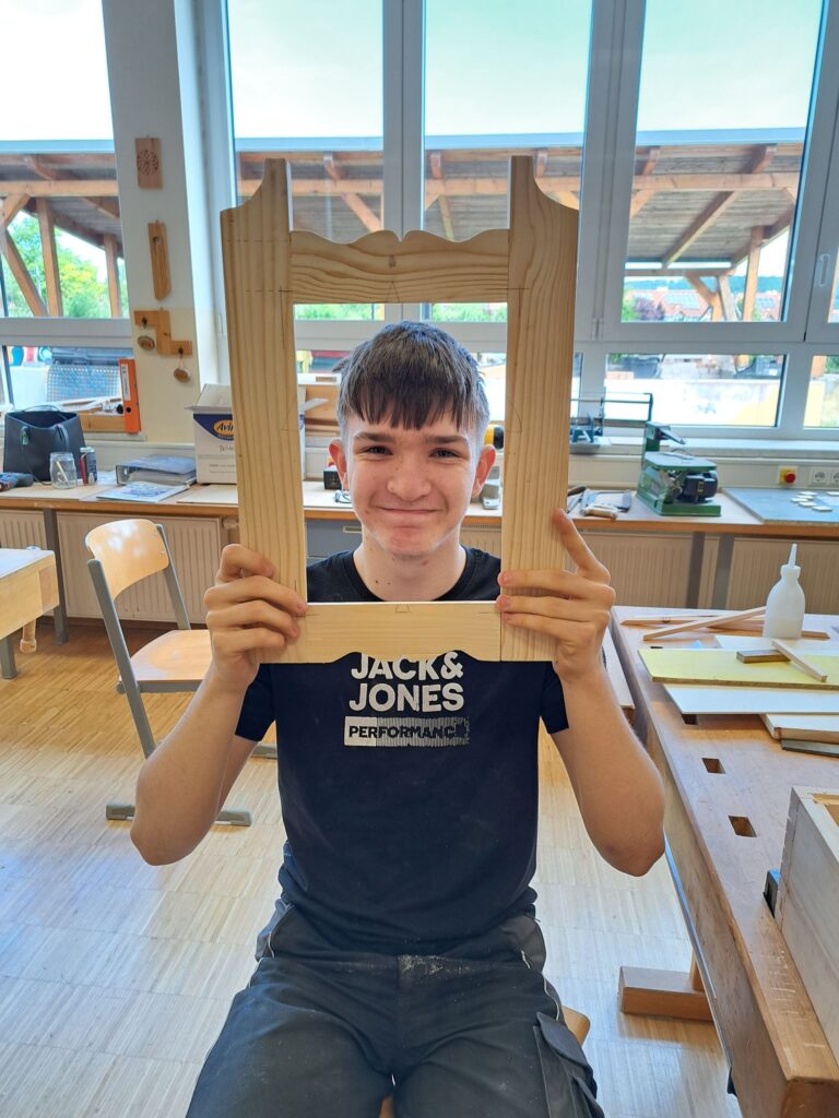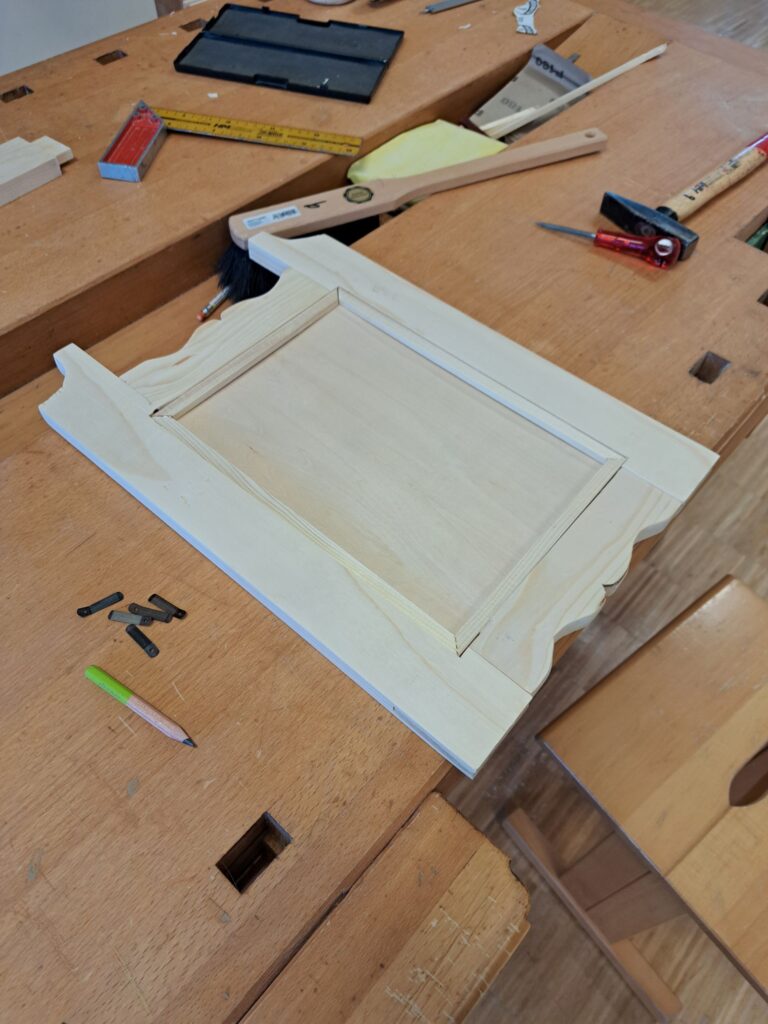 Nach Abschlussarbeiten bei der Brotdose steht wieder der Bilderrahmen im Mittelpunkt. Die SchülerInnen lernen dabei auch das richtige Verleimen und Leisten auf Gehrung zu schneiden. Diese Arbeit ist das letzte Werkstück für heuer, im Juni werden dann die Hobelbänke auf Vordermann gebracht und die Werkstatt inventarisiert.