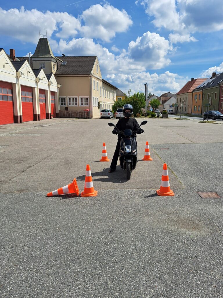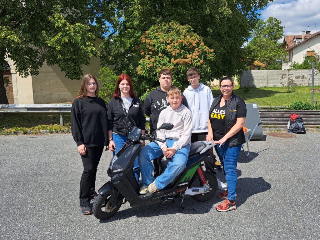 Bei schönstem Maiwetter wurde für die praktische Mopedprüfung geübt. Das Links- und Rechtsabbiegen sowie das Zufahren an den Straßenrand trainierten die SchülerInnen mit dem von den EasyDrivers zur Verfügung gestellten E-Roller. Gutes Gelingen!
