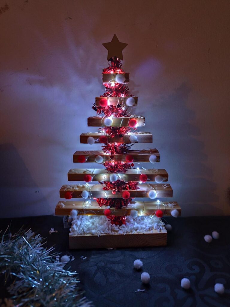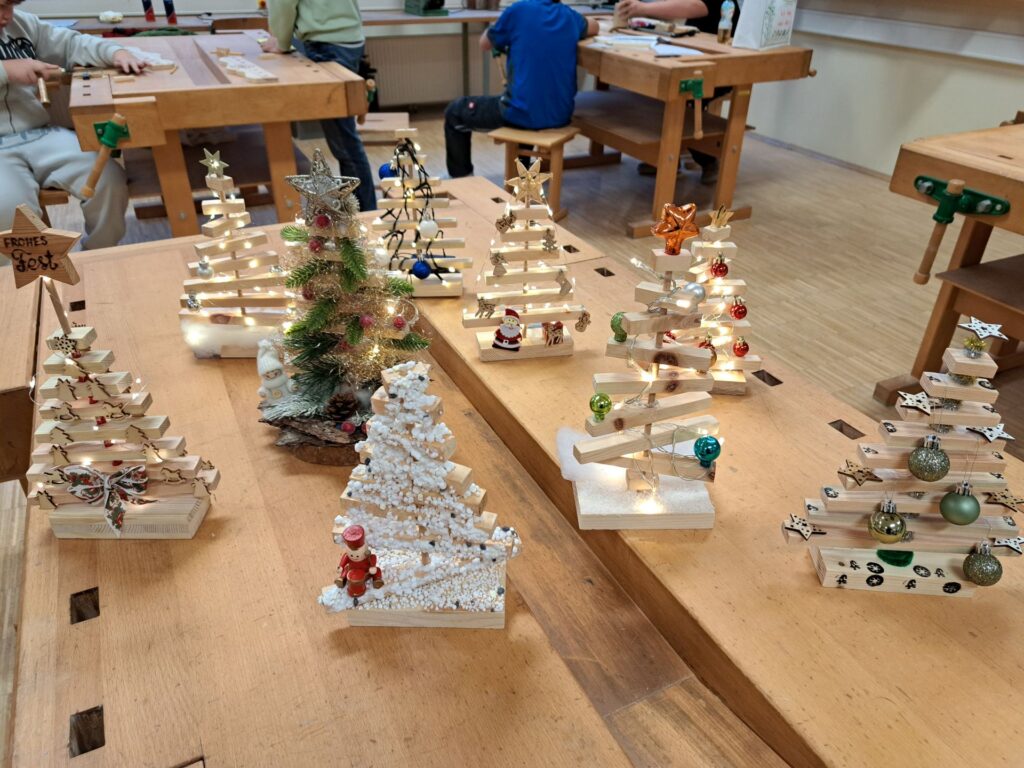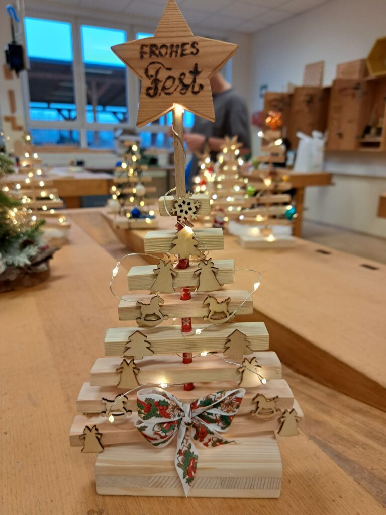 Auf Initiative einiger SchülerInnen wurde im FB Holz die Dekochristbaumchallenge ins Leben gerufen. Die Holzteile dafür fertigten die SchülerInnen im Unterricht an, dann wurde alles mit nach Hause genommen und fertig gemacht. Schlussendlich wurden im Unterricht die 3 schönsten von unparteiischen Bewertern gekürt. Fazit der Holzleute: Des woa supa!
