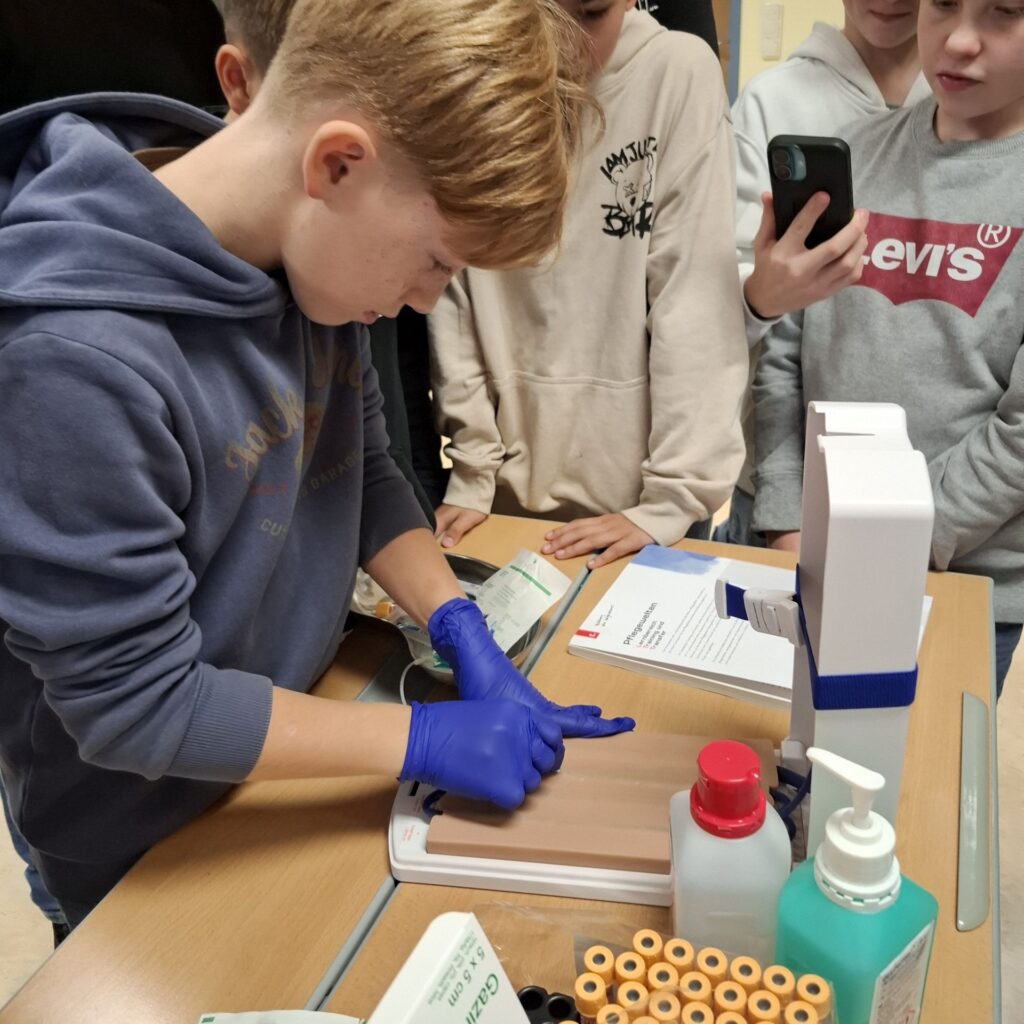 Bereits zum dritten Mal durfte das Team der PTS Horn rund 120 MittelschülerInnen zum Gesundheitstag in der PTS begrüßen. In einem mehrstündigen Stationenbetrieb erfuhren die Jugendlichen viel Interessantes und Wissenswertes über etwaige Pflegeberufe. Vertreten waren das Rote Kreuz, das Hilfswerk, die Landesgesundheitsagentur, das Haus der Barmherzigkeit, das Hörcafé und Optik Friedl. Auch die Schule selbst organisierte zwei Stationen.  Für Hauptorganisatorin Lehrerin Birgit Bigler und ihren Kolleginnen und Kollegen der PTS Horn ist ein Fakt klar: „Die Idee hinter dem Gesundheitstag war es, den SchülerInnen ein Gefühl für Gesundheitsberufe zu übermitteln und die schulischen Wege dorthin aufzuzeigen. Gerade durch die neu geschaffene Pflegelehre bietet sich die Polytechnische Schule als Startpunkt für den Weg in einen Gesundheitsberuf mehr an denn je.“