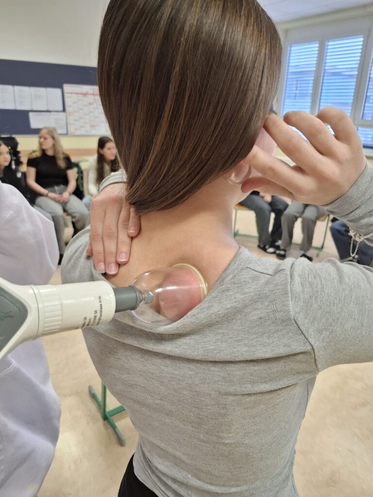 Auch der Gesundheitsbereich kommt in der PTS Horn im Fachbereich GSS nicht zu kurz. Magdalena Landauer folgte der Einladung von Fachbereichsleiterin Birgit Bigler und gestaltet mit den Mädchen des Fachbereiches einen sehr informativen und interessanten Vortrag zum Thema „Massagearten und dessen Wirkung auf den menschlichen Körper“. Die ausgebildete Heilmasseurin mit Praxis in Neupölla erzählte den Mädels ihren beruflichen Werdegang, über ihren Ausbildungsweg, ihre Selbstständigkeit, aber auch die Vor- und Nachteile ihres Berufes wurden thematisiert. In der zweiten Workshophälfte zeigte Frau Landauer den Schülerinnen verschiedene Massagearten und erklärte dessen Wirkungsweise im Körper. Danke für den Besuch.