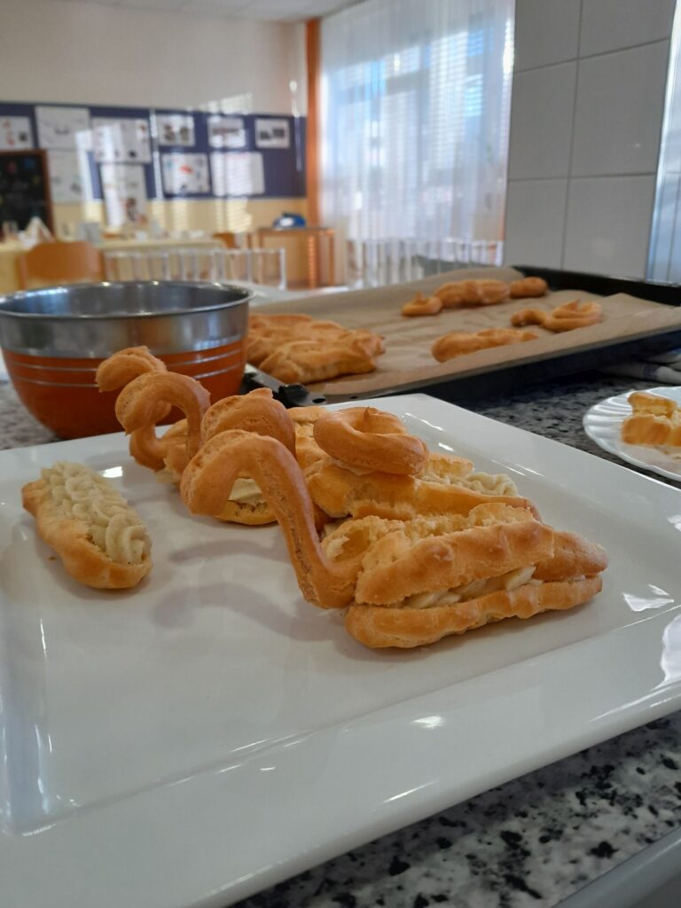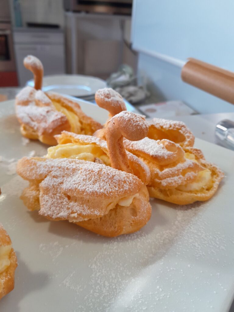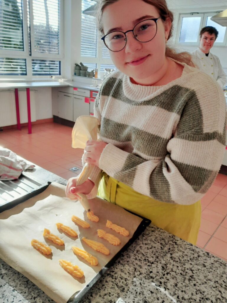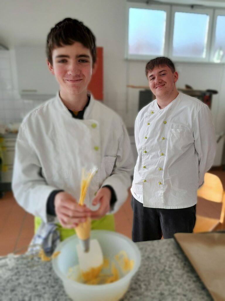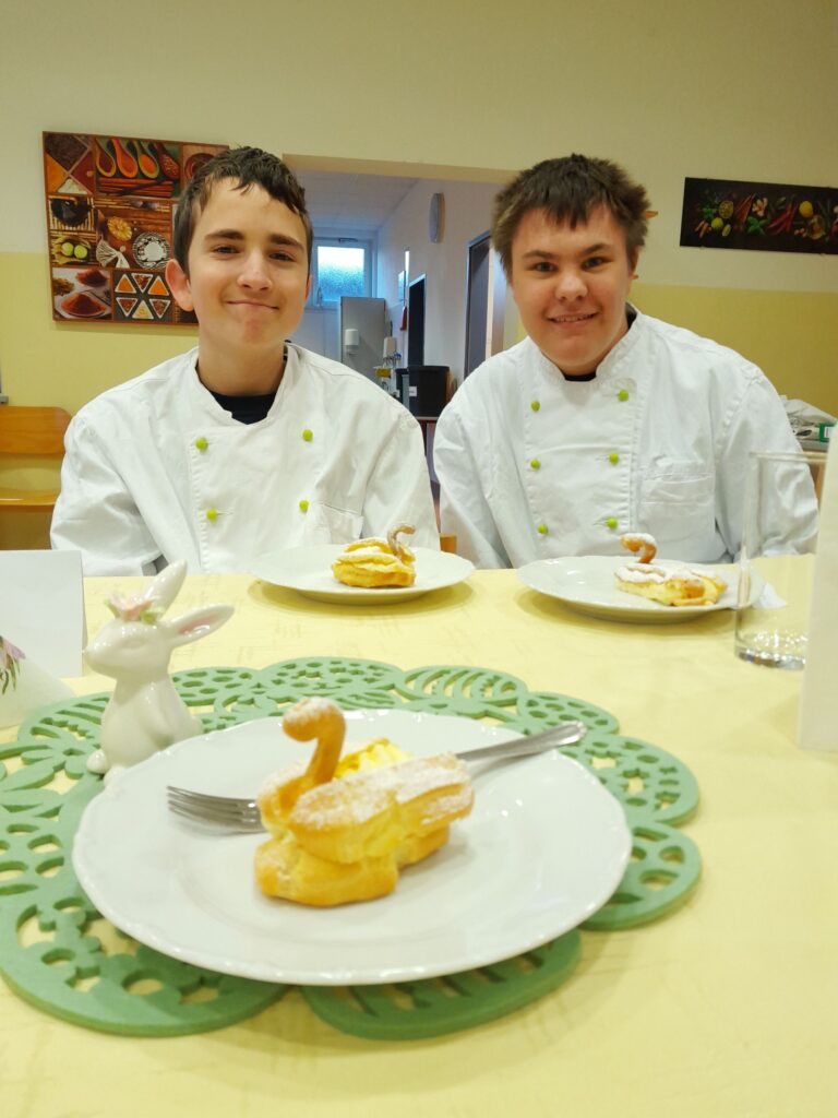 Besondere Kunstwerke wurden kürzlich in der schuleigenen „Konditorei“ gezaubert: Wunderschöne Schwäne aus Brandteig mit Vanillecreme. Als Hauptgang gab es vegetarische Ofenkartoffeln mit würziger Füllung und einem frischen Salat für den Vorgeschmack auf den nahenden Frühling.