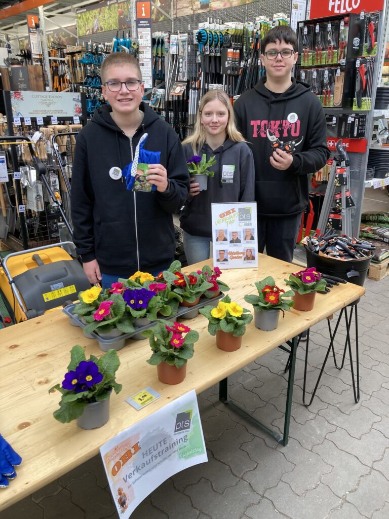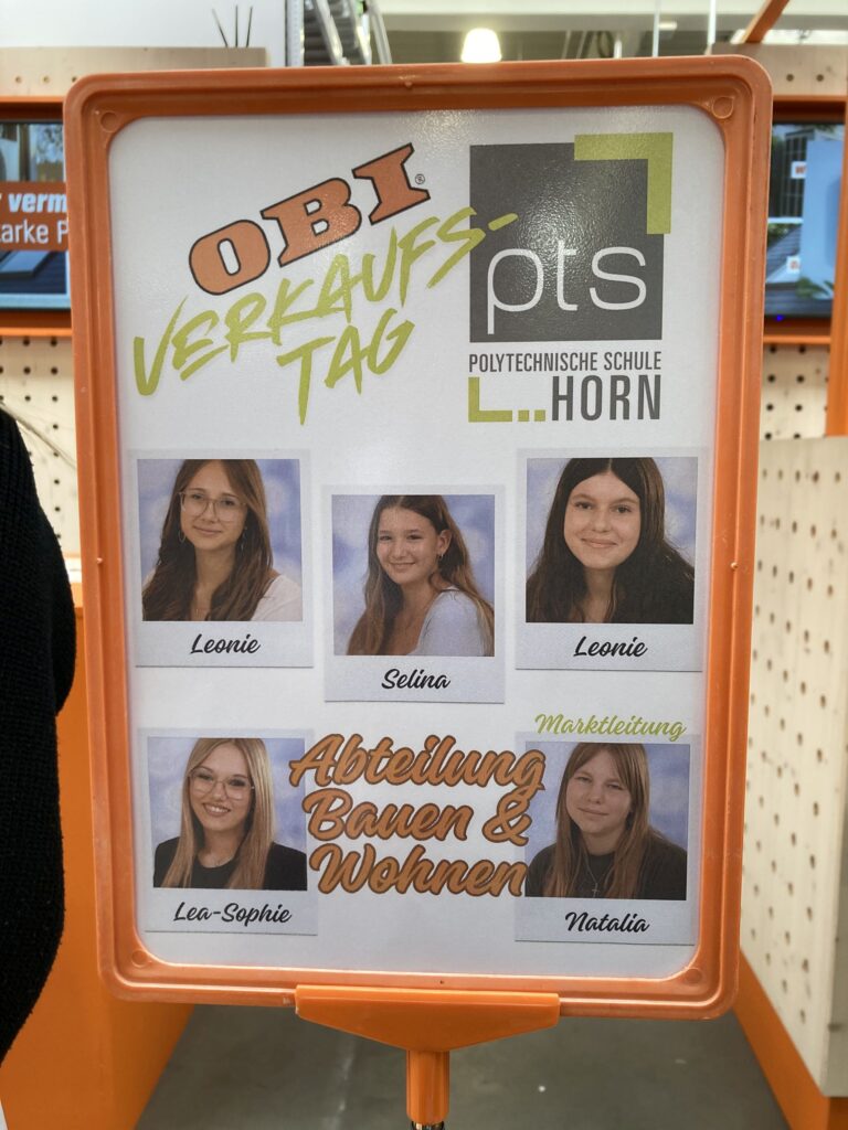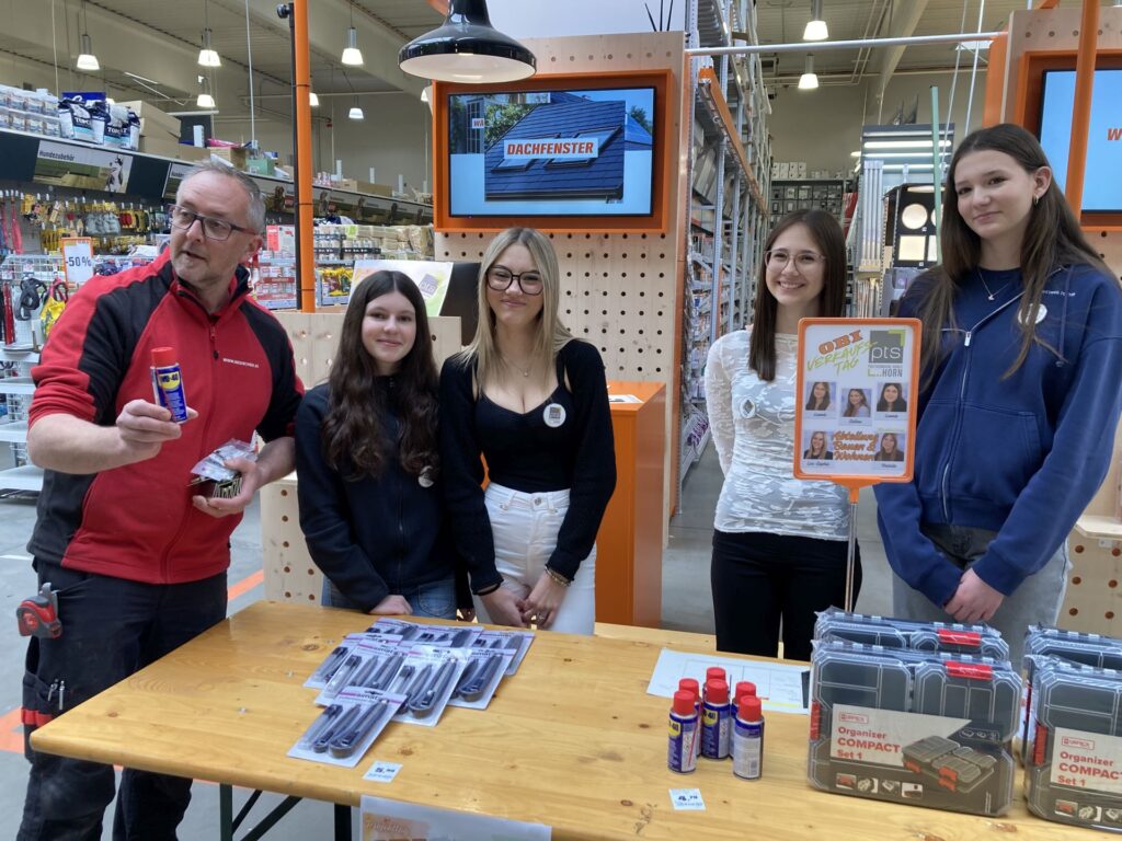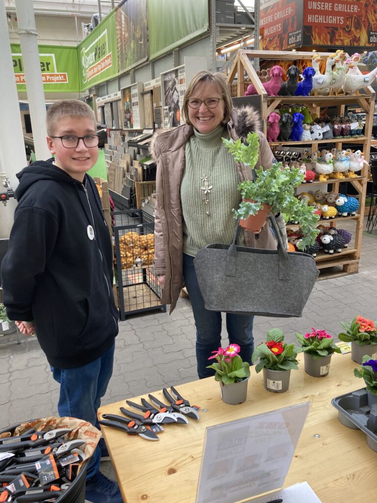 Stephan Lamatsch, Leiter des OBI-Marktes in Horn, gab unseren Schülerinnen und Schülern des Fachbereiches Handel-Büro die Möglichkeit – im OBI-Markt in Horn – echte Ware an echte Kundinnen und Kunden zu verkaufen.Zwei Verkaufstische in den Abteilungen „Garten“ und „Bauen & Wohnen“ wurden mit Waren, die die Schüler*innen selbst auswählten, bestückt … dem 1. Verkauf stand nun nichts mehr im Wege.