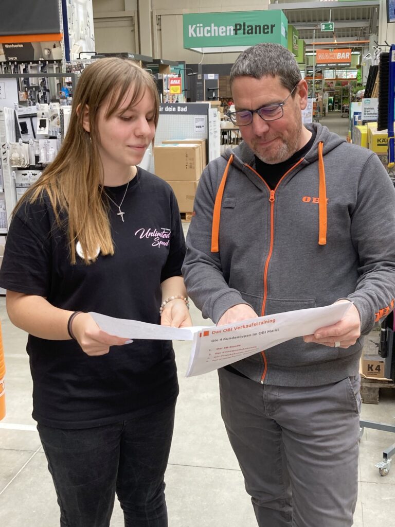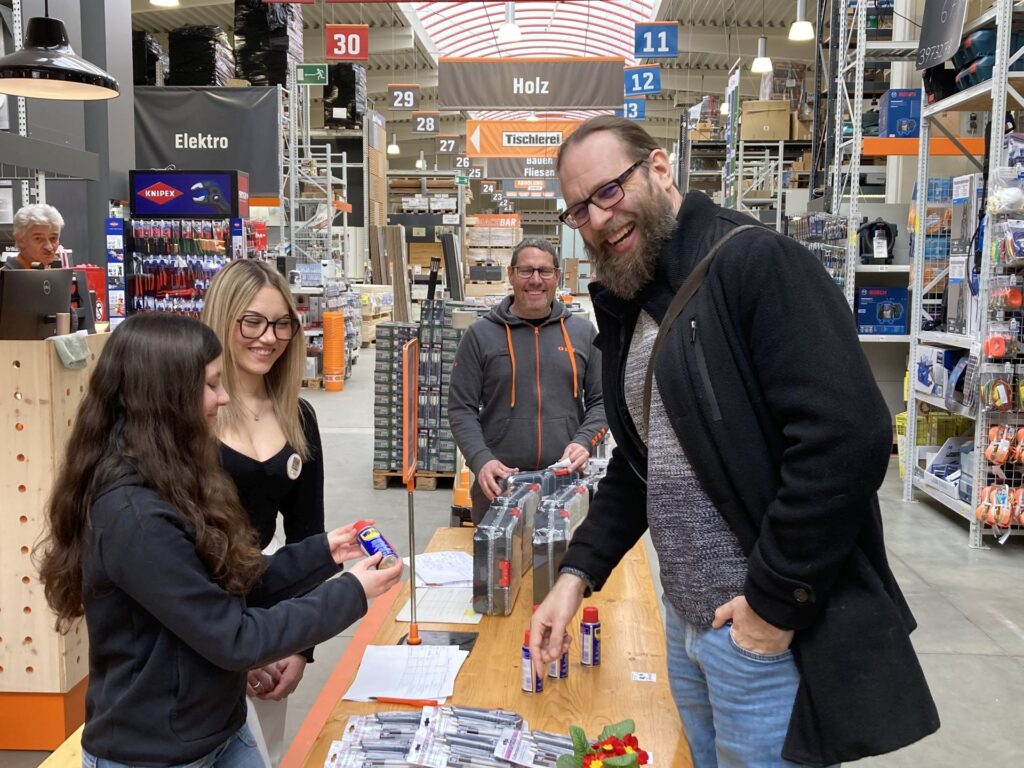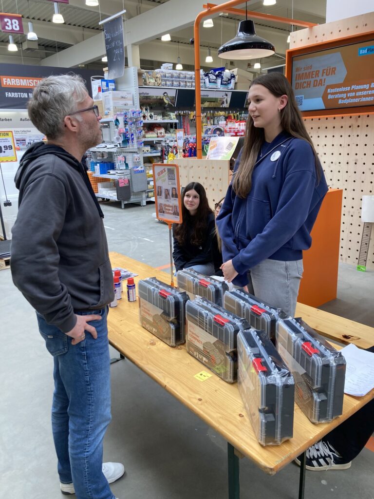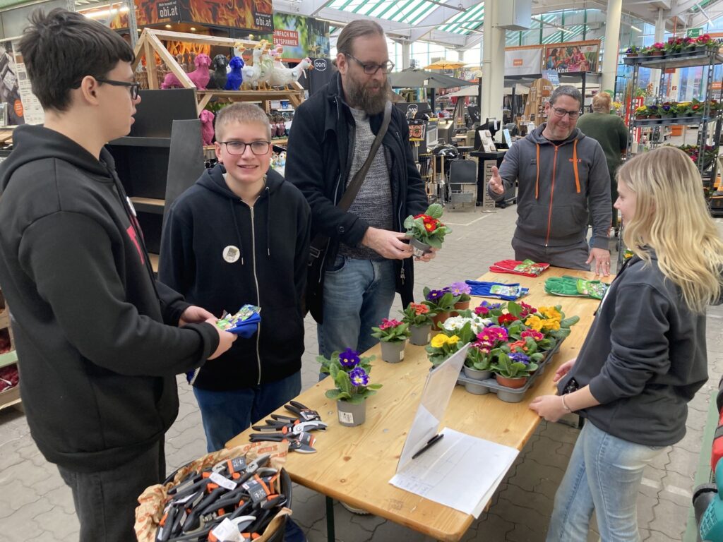 Stephan Lamatsch, Leiter des OBI-Marktes in Horn, gab unseren Schülerinnen und Schülern des Fachbereiches Handel-Büro die Möglichkeit – im OBI-Markt in Horn – echte Ware an echte Kundinnen und Kunden zu verkaufen.Zwei Verkaufstische in den Abteilungen „Garten“ und „Bauen & Wohnen“ wurden mit Waren, die die Schüler*innen selbst auswählten, bestückt … dem 1. Verkauf stand nun nichts mehr im Wege.
