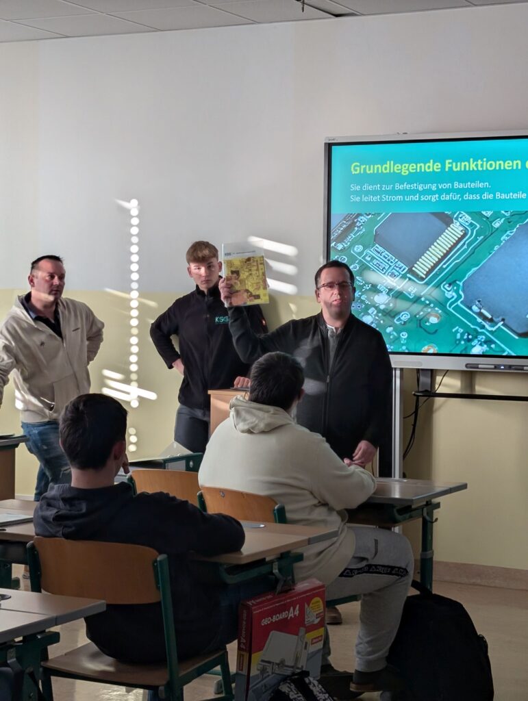 Im Fachbereich Elektro-Mechatronik beschäftigten sich die Schüler mit Schaltungen, Verbrauchern und Widerständen. Dabei erlernten sie das Berechnen von Stromstärke und Spannung und das richtige Ablesen von Widerständen. Im Fachpraxisunterricht wurden Reihen- und Parallelschaltungen aufgebaut, Widerstände eingebaut, Berechnungen durchgeführt und mit dem Multimeter gemessen.